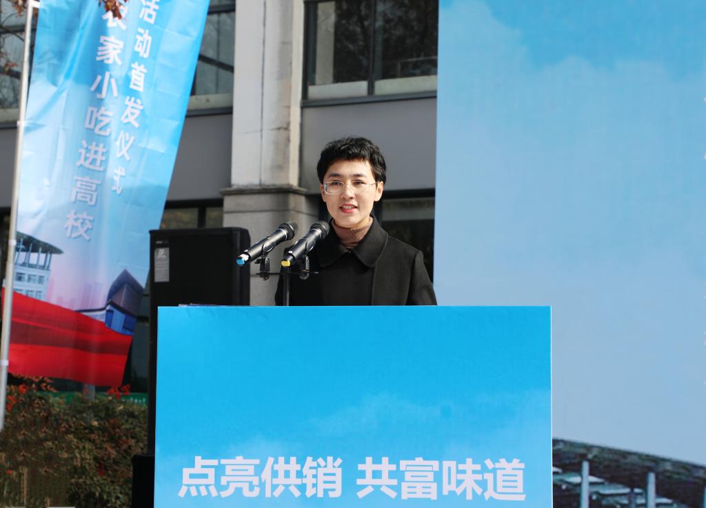 朱斌代表学校致辞。他表示,感谢省供销社对浙农林大的信任和支持,“浙江农家小吃进高校”的第一站来到浙江农林大学,搭建了一座沟通地域文化与校园文化的美食之桥。朱斌指出,学校一直致力于推进乡村振兴、助力共同富裕,以科技赋能农村产业发展。经学校优化改良后的山核桃、香榧,不仅成就了健康零食的“新食尚”,更打造了“一亩山万元钱”的共富新模式;经过高值化利用和生态化种植的铁皮石斛、黄精、三叶青、金线莲,晋升为“养生滋补第一食”,带富了一大批种植户;高油酸花生、高亩产玉米、高效种植的猕猴桃、葡萄、火龙果……一批批具有“农林特色和辨识度”的“金名片”,既满足了人们的味蕾和健康需求,又鼓起了农民的口袋。