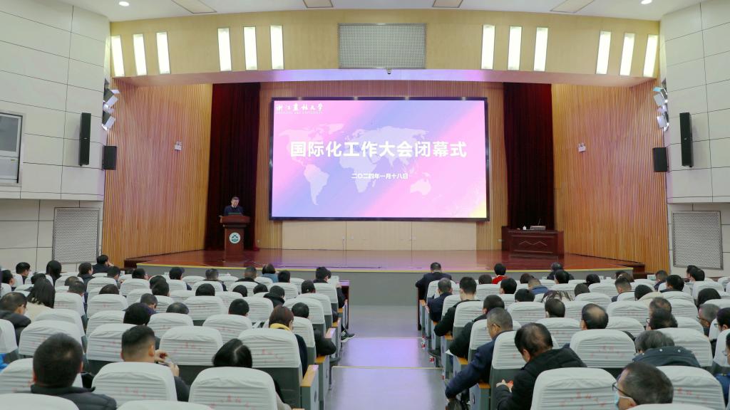 1月18日,为期十天的学校国际化工作大会在东湖校区图书馆第一报告厅闭幕。校党政领导班子成员朱斌、沈希、施美红、沈月琴、胡祖吉、徐爱俊、包松永、倪建均、宋厚辉出席大会闭幕式。闭幕式由副校长吴家胜主持。