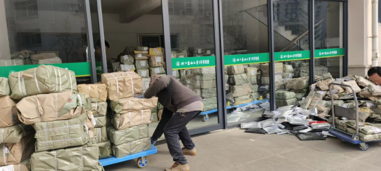 “学生未到,行李先到”,面对开学初期快递入库量明显增加的情况,菜鸟驿站全体快递人员全力以赴,做好快递入库、上架等工作。送水师傅们也陆续返岗,个个精神饱满,以最大的工作热情投入工作,迎接师生返校。