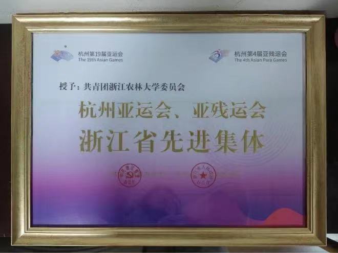 近日,浙江省委、省政府召开杭州亚运会、亚残运会总结表彰大会,表彰亚运先进集体和先进个人。共青团浙江农林大学委员会荣获中共浙江省委办公厅、浙江省人民政府办公厅授予的“杭州亚运会、亚残运会浙江省先进集体”荣誉称号。领队教师许赛、火炬手吴素青荣获“杭州亚运会、亚残运会浙江省先进个人”荣誉称号。
