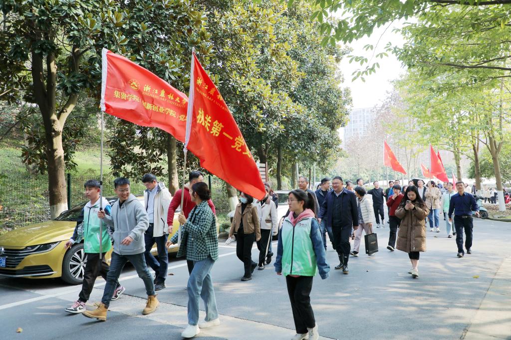 校党政班子成员朱斌、沈希、冯尚申、施美红、沈月琴、胡祖吉、吴家胜、徐爱俊、包松永、倪建均等与师生代表一起,在东湖校区B3宿舍楼东侧携手添种一片新绿。大家满怀热情地挥锹、铲土、栽种……三五人一组,团结协作、干劲十足。不到2小时,雷公鹅耳枥、毛鸡爪槭、野茉莉、杭州榆、伯乐木等10余种200多棵树苗迎风挺立,为校园增添了一抹春意、一道生机盎然的风景线。