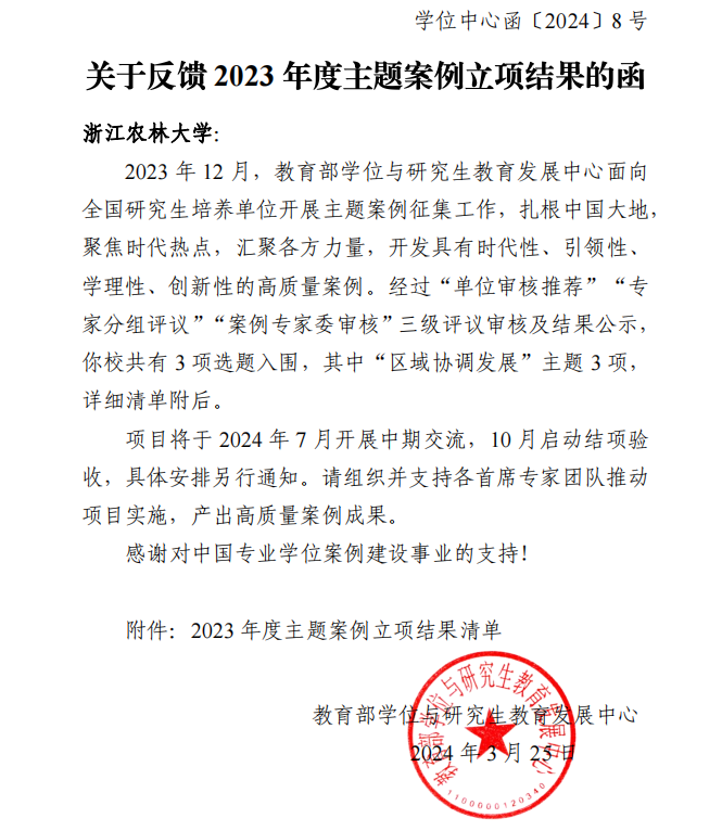 近日,教育部学位与研究生教育发展中心公布2023年主题案例征集立项结果。我校申报的3项“区域协调发展”主题案例获批立项。
