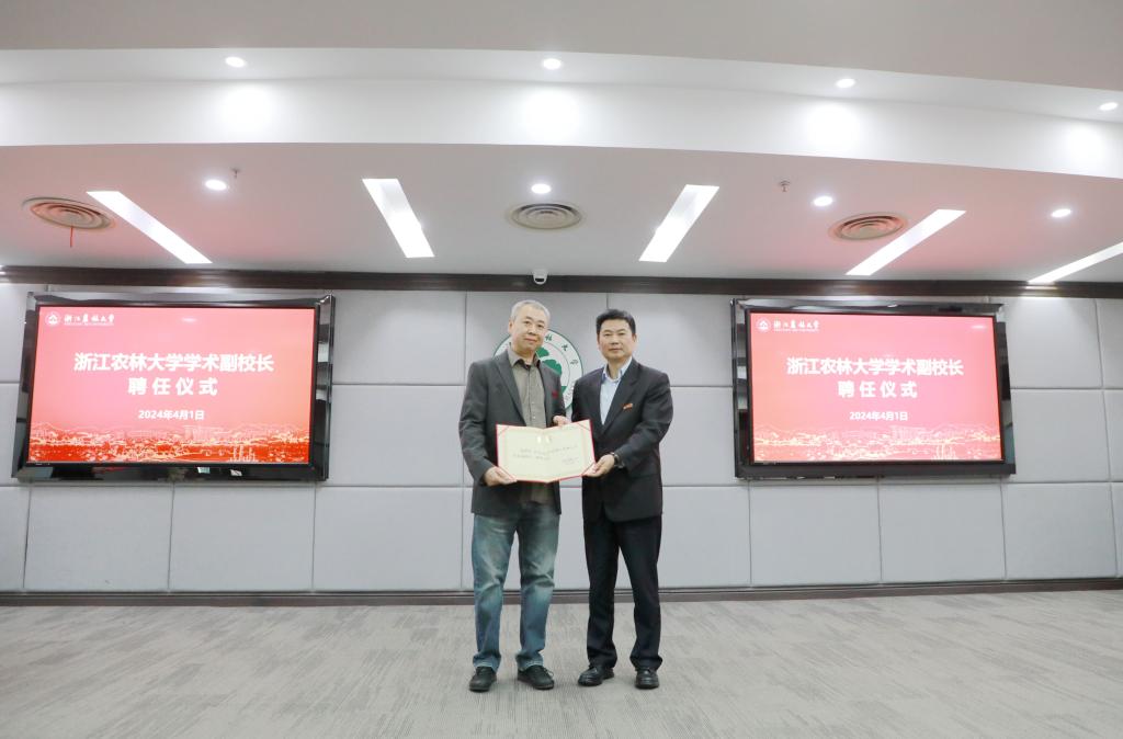 4月1日,浙江农林大学学术副校长聘任仪式在图书馆第二报告厅举行。浙江省教育厅总督学陈仁坚出席聘任仪式并讲话。聘任仪式由校党委书记朱斌主持。校党政班子成员出席仪式。