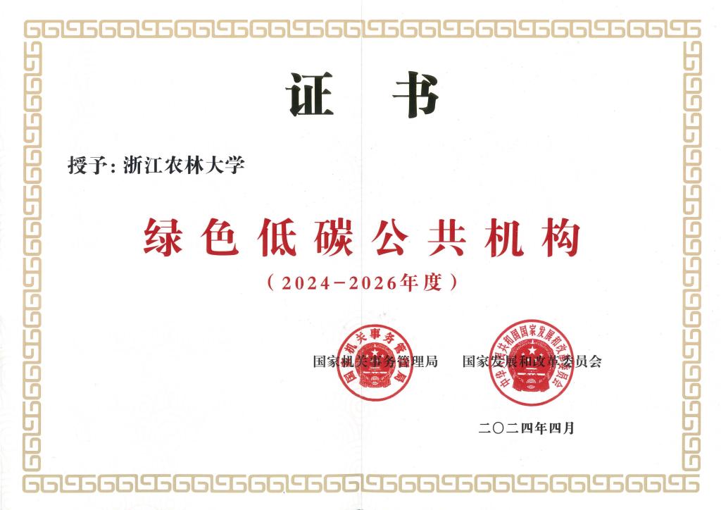 近日,国家机关事务管理局和国家发展和改革委员会联合发布全国首批绿色低碳公共机构名单。我校获评2024-2026年度全国“绿色低碳公共机构”,浙江省仅有10家单位获此殊荣,我校是浙江省唯一入选的高校。
