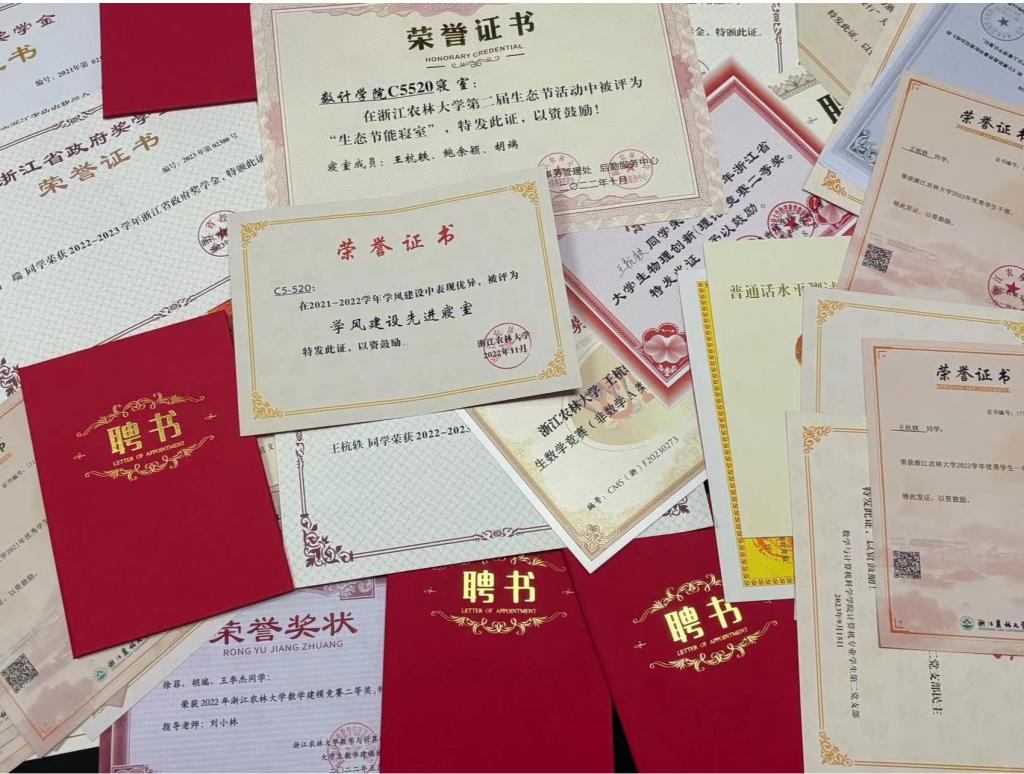 在2024年全国硕士研究生招生考试中,来自C5-520寝室的王杭轶、鲍余颖和胡端三人分别被浙江农林大学、浙江工业大学、杭州电子科技大学的计算机专业录取。她们在大学生活中结伴同行,并肩努力,分别担任学生会干部、社团负责人、党支部委员、班委等多项职务;在学习科研上互促互进,精益求精,斩获了十余项省级以上的奖项,三人共计获得5项省政府奖学金、4项校一等奖学金,分别荣获校级优秀毕业生称号。