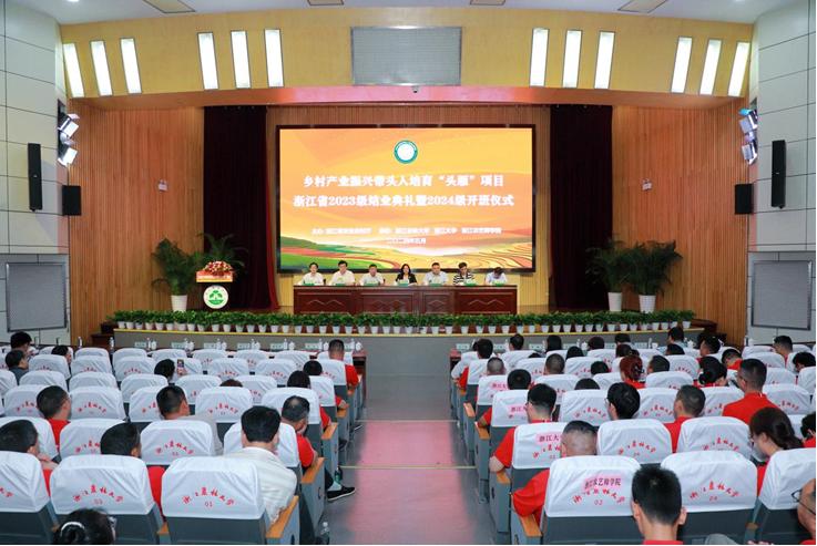 5月24日下午,乡村产业振兴带头人培育“头雁”项目浙江省2023级结业典礼暨2024级开班仪式在我校东湖校区举行。