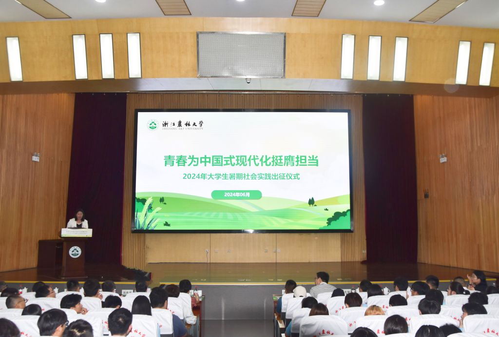 6月24日,2024年浙江农林大学暑期社会实践出征仪式在图书馆第一报告厅举行。校党委副书记施美红,校党委委员、宣传部部长倪建均出席活动。