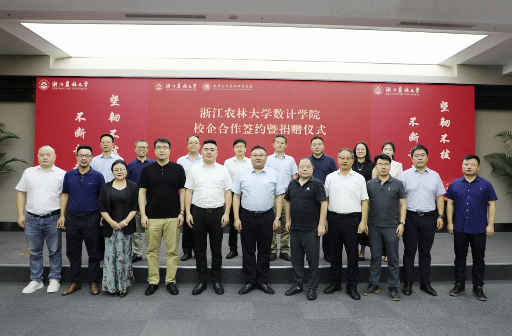 7月6日下午,浙江农林大学数学与计算机科学学院校企合作签约暨捐赠仪式在东湖校区举行。校党委书记朱斌、副校长胡祖吉、科大讯飞股份有限公司浙江大区总经理王晶晶、浙江托普云农科技股份有限公司董事长陈渝阳、浙江汉商科技有限公司总经理郑经强、浙江青蕾教育科技有限公司总经理方雪青、浙江中科曙光公司副总经理张静波等出席仪式。