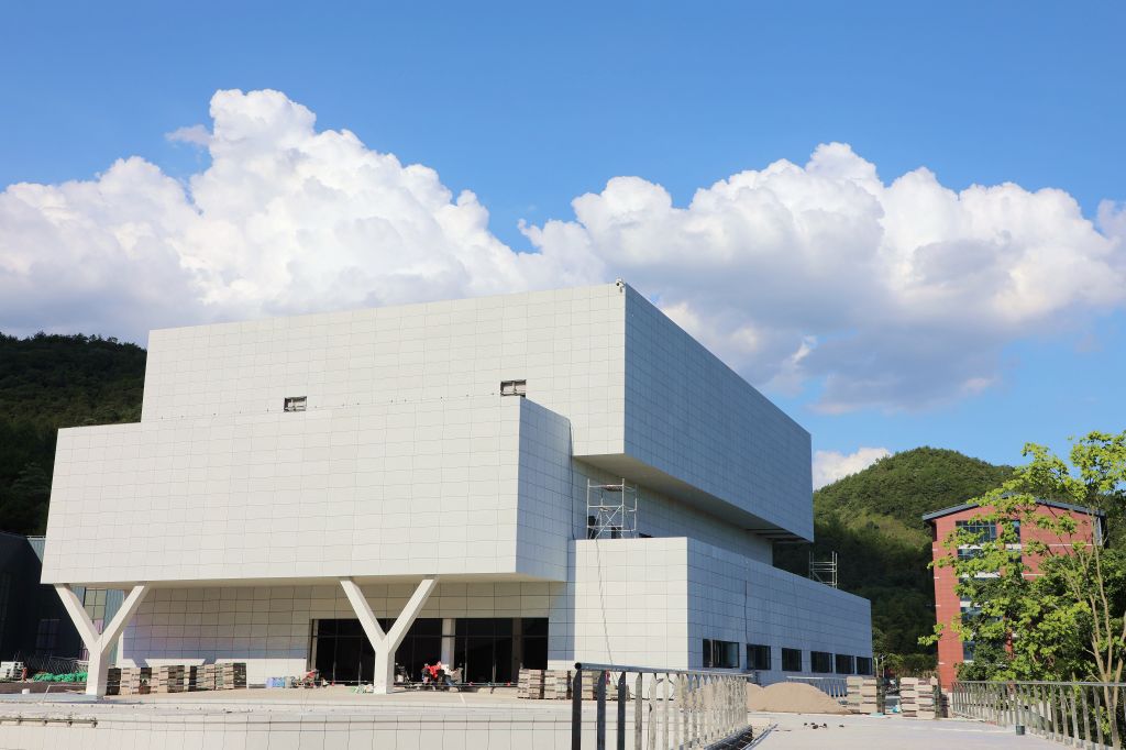 现场工人们正忙碌着完成最后的收尾工作。
