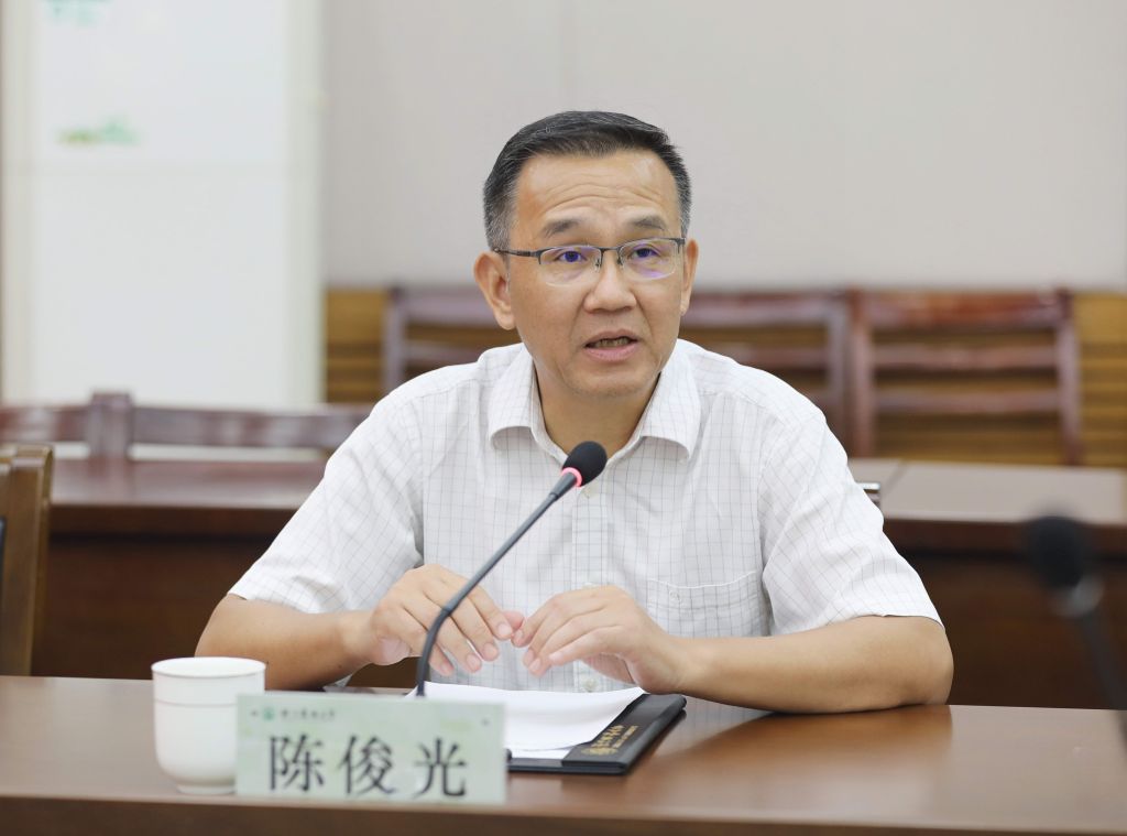 朱斌对陈俊光局长一行来校表示欢迎,对广东省林业局、浙江省林业局长期以来对学校的关心支持表示感谢,并介绍了学校办学历程、办学特色、人才培养、科学研究以及社会服务等方面的情况。
