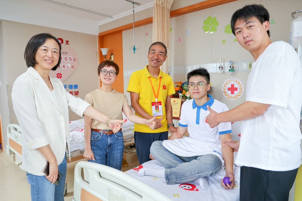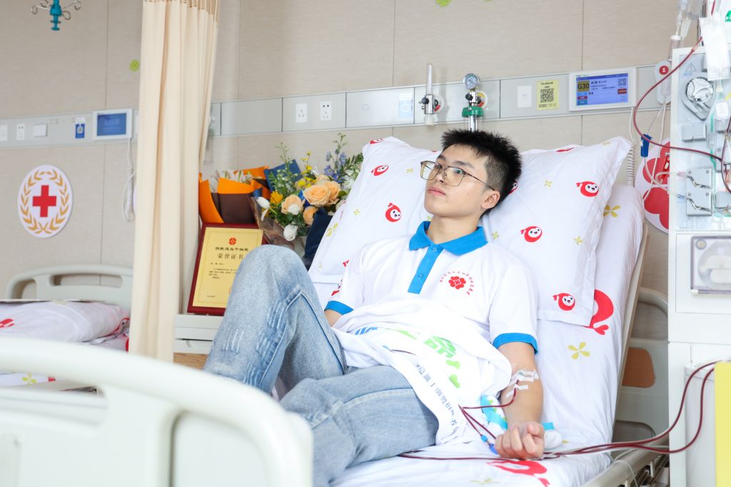 学校的老师、红十字会、医院的医生护士也陪伴在余涛的身边,“整个过程都很安心的,所有的注意事项工作人员都会非常细致地跟我讲清楚”,余涛说,“感觉有一点疲惫的,学校和老师都很关心我,嘱咐我一定要先休息好,我觉得非常感动”。