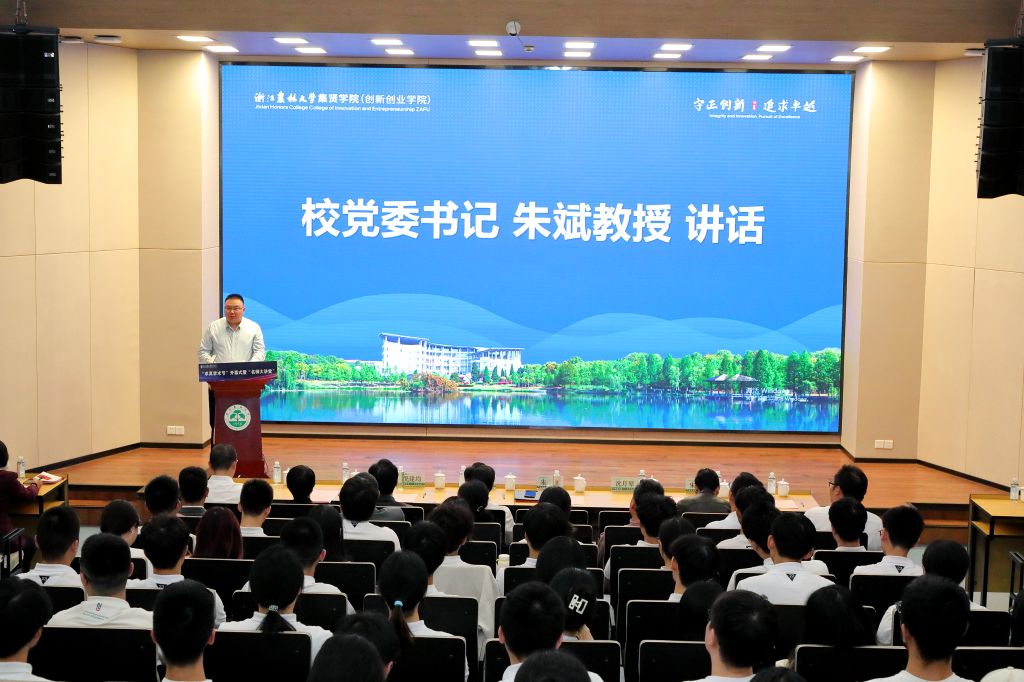 应义斌从专业知识与全面成长、选择与坚持、绩点与成长、不输在起跑线与不输在终点线、世俗意义上的成功与生命意义上的成功等辩证观点出发,勉励求真实验班学生要“因为相信,所以看见”,行远自迩、笃行不怠,坚定做一位践行长期主义的奋斗者。他希望同学们在校时,要努力追求人性优秀基础上的学业成功。在未来,要努力追求人性优秀基础上的事业成功,真正做一位责任与担当并肩、励志与笃行并立、理性与情怀并重的有灵魂的卓越者。