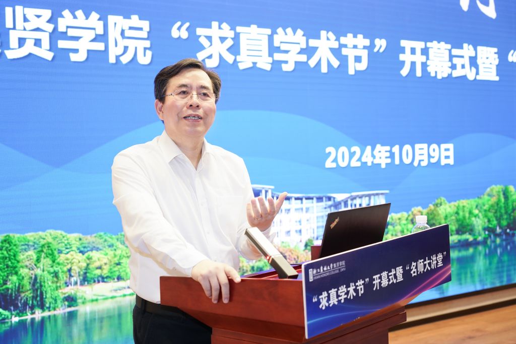 10月9日,集贤学院“求真学术节”开幕式暨“名师大讲堂”在东湖校区学三国际报告厅举行。浙江省科协副主席、浙江大学发展委员会副主席、浙江农林大学原校长应义斌教授应邀出席并授课“名师大讲堂”。校党委书记朱斌、副校长沈月琴、校党委副书记倪建均、校党委委员宋厚辉出席活动。