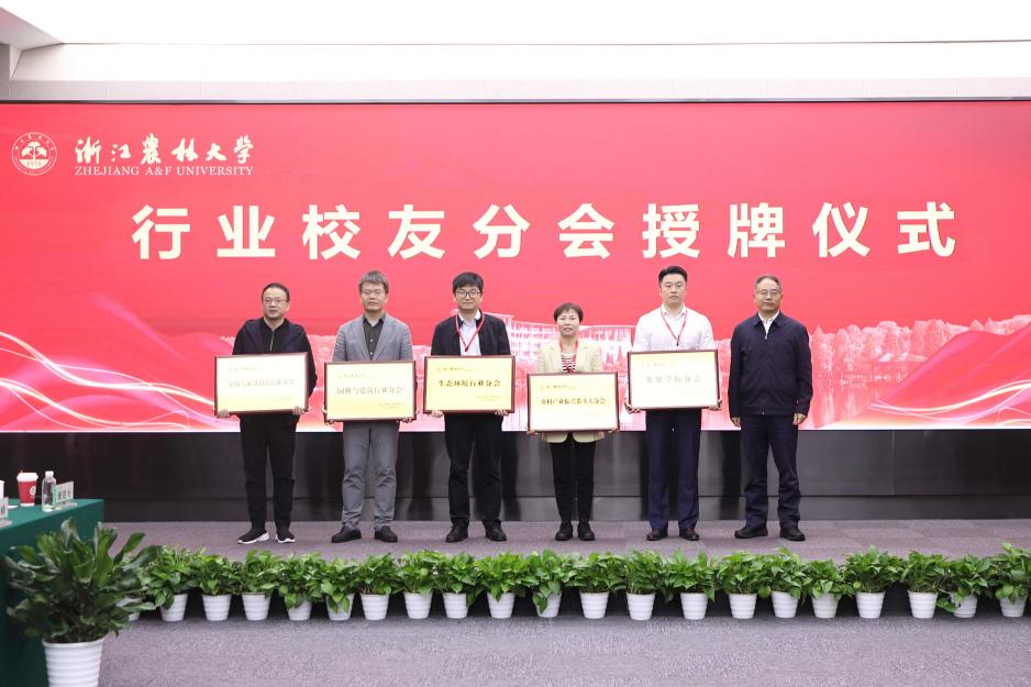 大会还举行了行业校友分会授牌仪式和行业校友分会基金揭牌仪式。胡祖吉为室内与家具设计行业分会、园林与建筑行业分会、生态环境行业分会、乡村振兴带头人校友分会、集贤学院校友分会授牌。