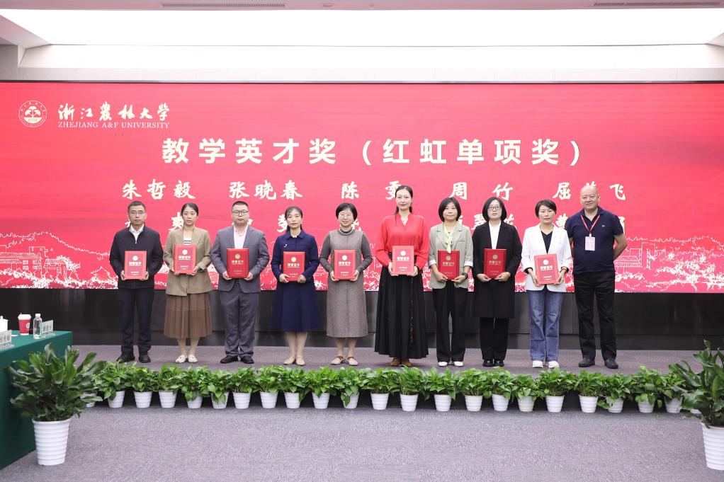 大会表彰了2024年度本科卓越教学教师(“红虹”奖教金获得者)。胡祖吉宣读表彰文件,方志刚和周维亮为获“教学卓越奖”的老师颁奖;“红虹”奖教金捐赠方代表、经济林87级校友、上海红虹木业有限公司总经理丁岳军为获“教学树人奖”和“教学英才奖”的老师颁奖。
