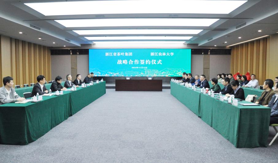 11月13日下午,浙江农林大学与浙茶集团战略合作框架协议签约仪式在东湖校区举行。