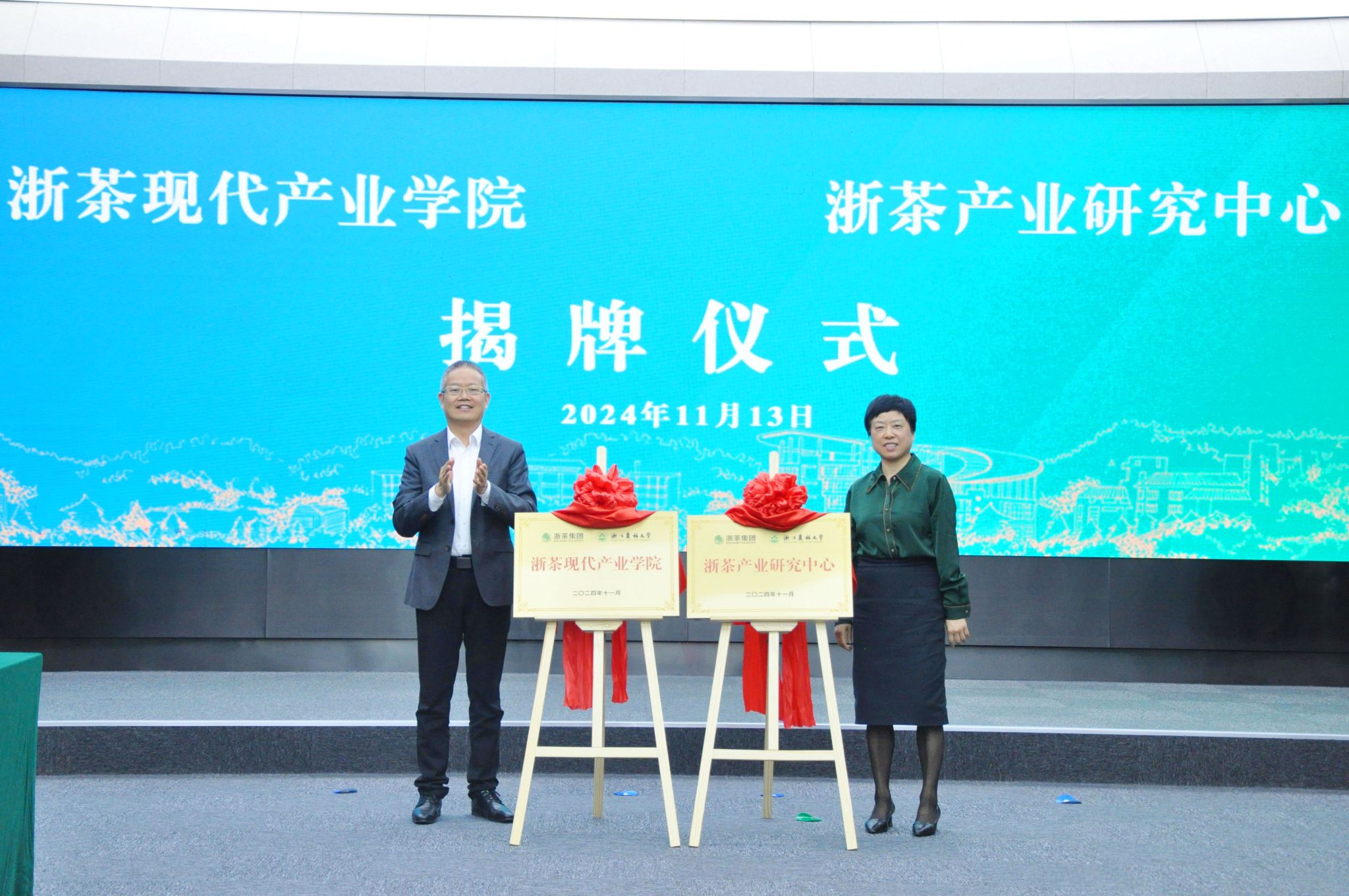 签约仪式上,双方签订了战略合作框架协议并举行了“浙茶现代产业学院”“浙茶产业研究中心”揭牌仪式。