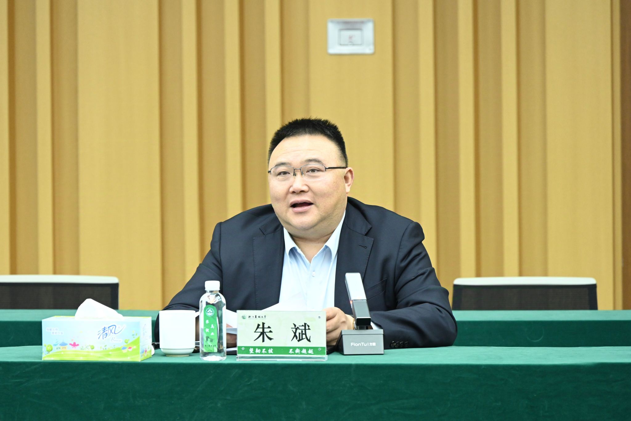朱斌对郑伟一行的到来表示欢迎,并简要介绍了学校的办学情况。他指出,与省农发集团的战略合作,是高等教育与产业的深度融合、科技与农业的携手共进,不仅是双方优势互补、互利共赢的重要战略选择,也是推动浙江省“新农人”培育、加快农业产业高质量发展的有力举措。