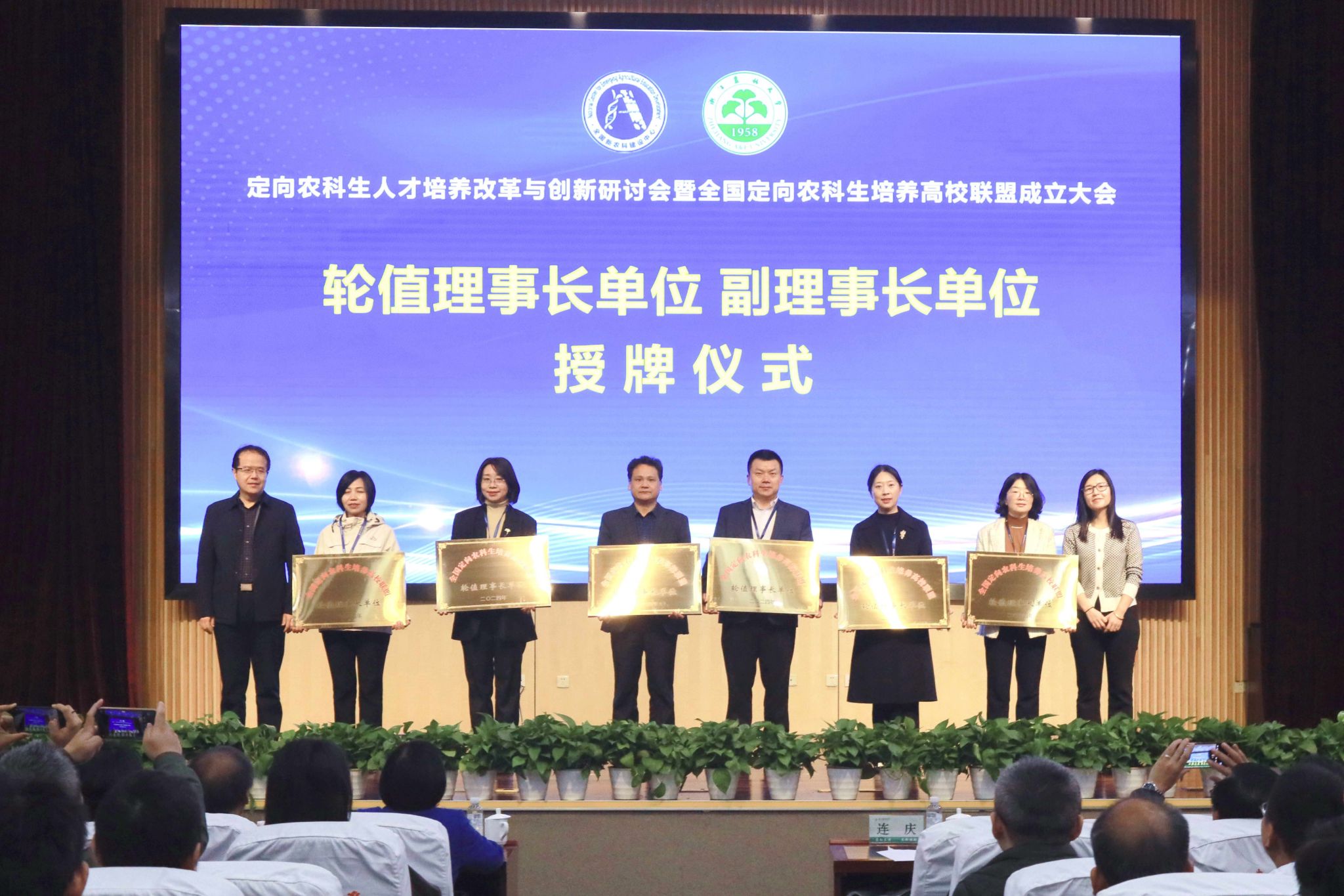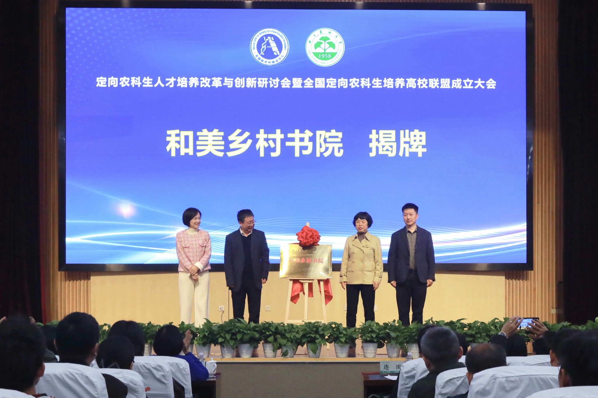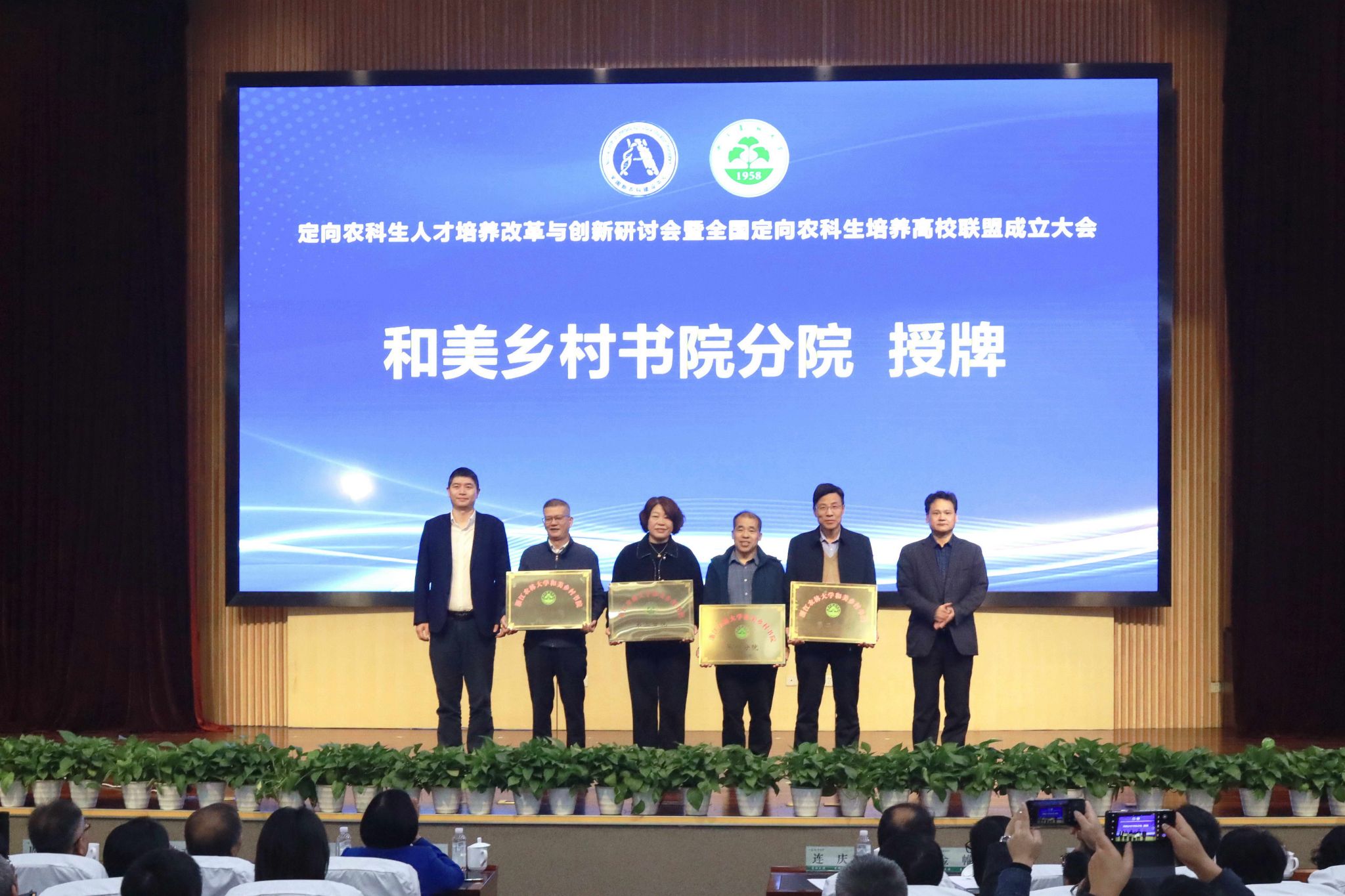 大会向轮值理事长单位、副理事长单位授牌,举行了浙江农林大学和美乡村书院揭牌仪式,并向和美乡村书院分院授牌。