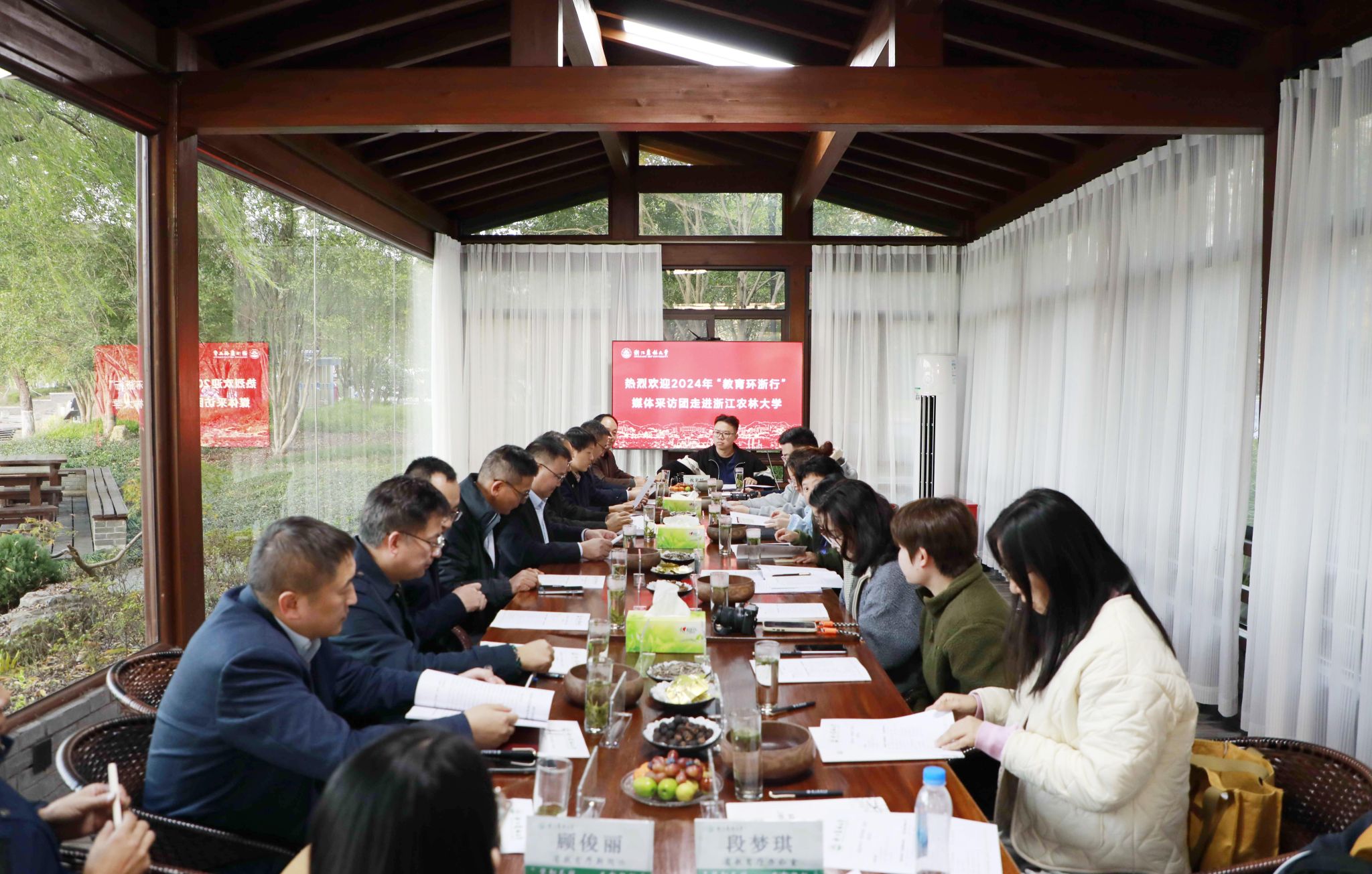 11月27日下午,由浙江省教育厅组织的2024年“教育环浙行”媒体采访团走进浙江农林大学。来自新华社、中央广播电视总台、光明日报、人民网、中国新闻社、中国青年报、浙江卫视等10多家中央新闻单位驻浙机构和省级主要新闻单位的记者,对我校基础设施提质工程、林学登峰学科建设、服务乡村全面振兴等方面工作进行集体采访。