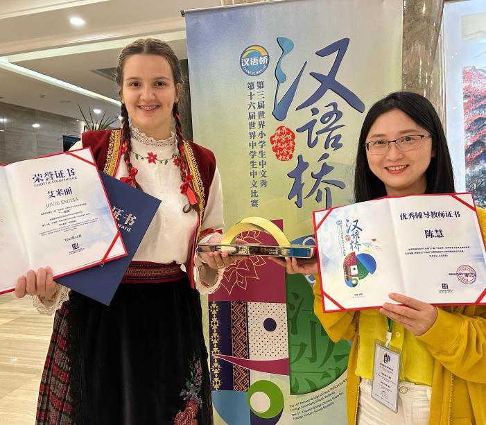 就在一年前,苏菲的姐姐,17岁的艾米丽(Emilia Jovic)也获得了第十六届“汉语桥”世界中学生中文比赛一等奖。这对姐妹花在诺维萨德大学孔子学院里,在浙江农林大学选派的老师悉心指导下,她们一起学习、一起成长、一起逐梦。