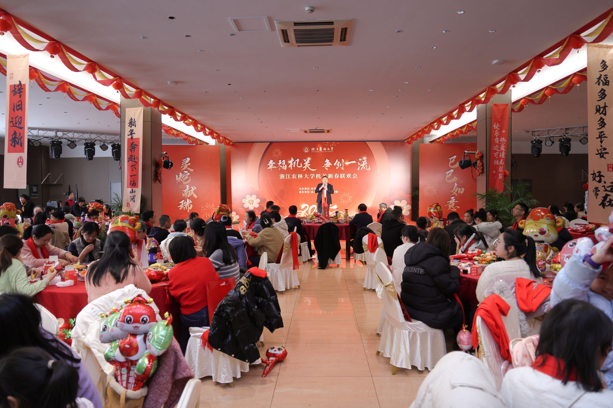 1月9日,食健学院在银杏餐厅举办“食光新岁 健行筑梦”2025新春联欢活动。联欢会表彰了在科学研究、人才培养、党建思政、社会服务等方面为学院做出重要贡献的一批教师代表,鼓励全体教职工新的一年再接再厉,再创佳绩。联欢活动还设置了写春联福字、辞旧迎新、包饺子吃饺子比赛、现场小游戏、大合唱等环节。现场气氛热情洋溢、其乐融融,充分展现了教职工凝心聚力、积极向上的良好精神风貌,活动在一片欢乐祥和的氛围中落下帷幕。