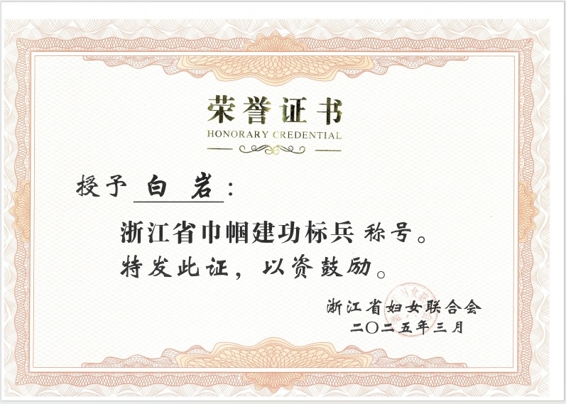 近日,浙江省妇联评选表彰了一批全省岗位建功先进集体和个人,我校食品与健康学院教授白岩获2024年度“浙江省巾帼建功标兵”称号。