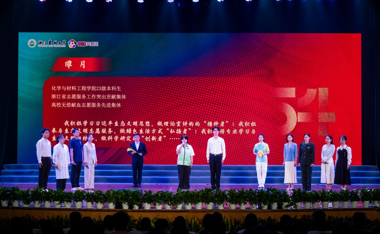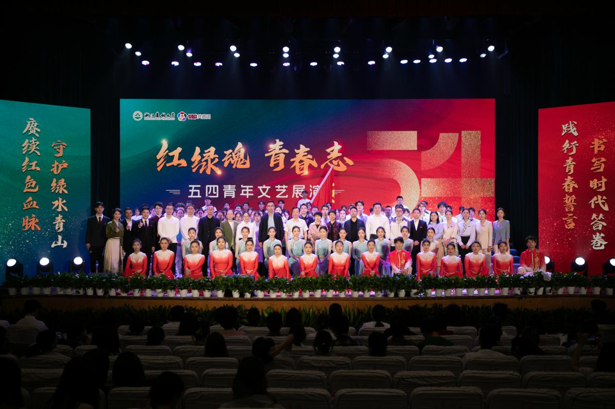 4月26日,浙江农林大学“红绿魂·青春志”五四青年文艺展演在东湖校区影剧院举行。校党委副书记倪建均、临安团区委书记陈丽等参加活动。