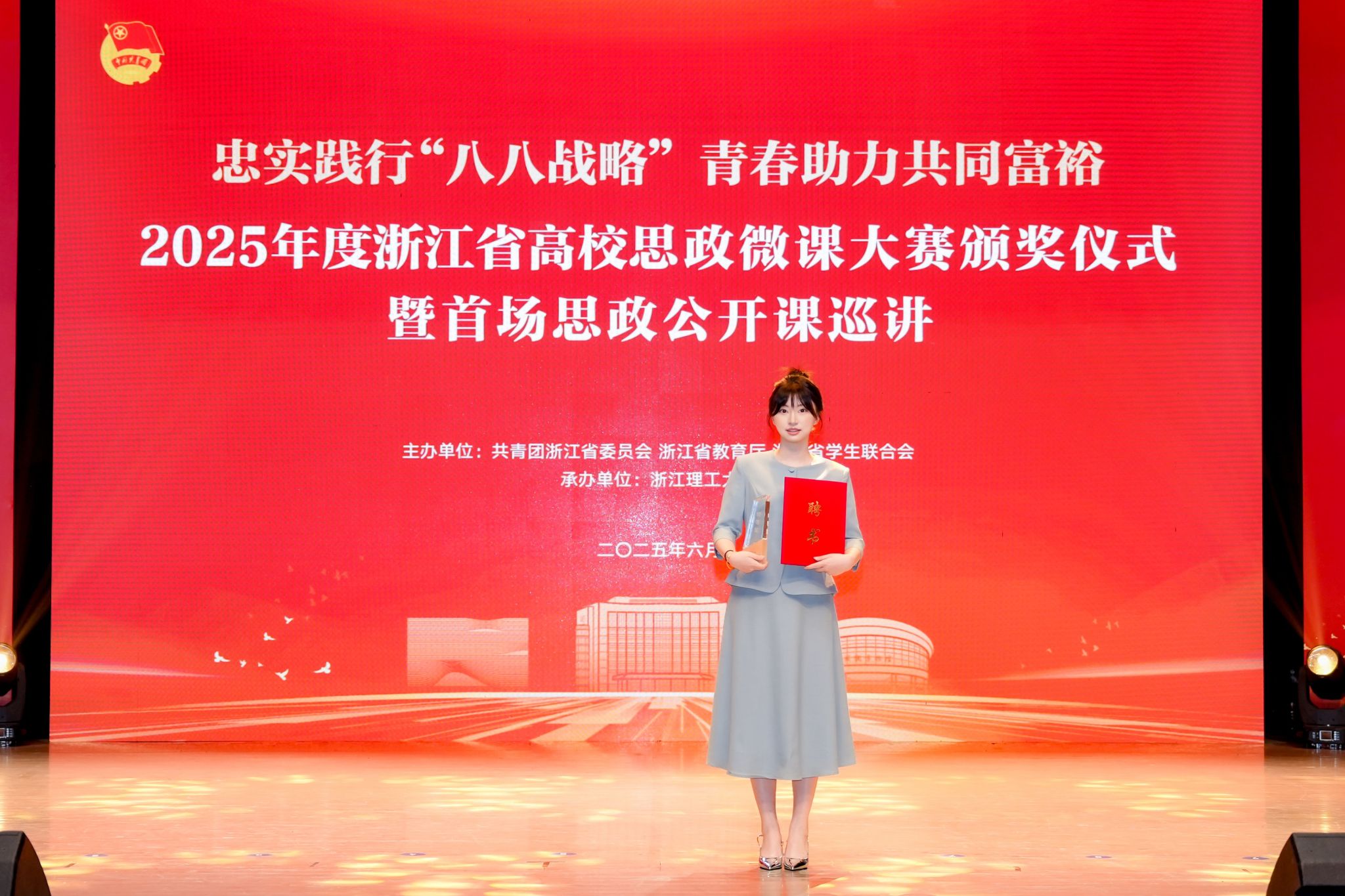 近日,由共青团浙江省委、浙江省教育厅、浙江省学生联合会共同主办的2025年度浙江省高校思政微课大赛圆满落幕。我校环资学院辅导员姚雯青脱颖而出,获得教师组特等奖。此外,还获得学生组二等奖1项、三等奖1项。