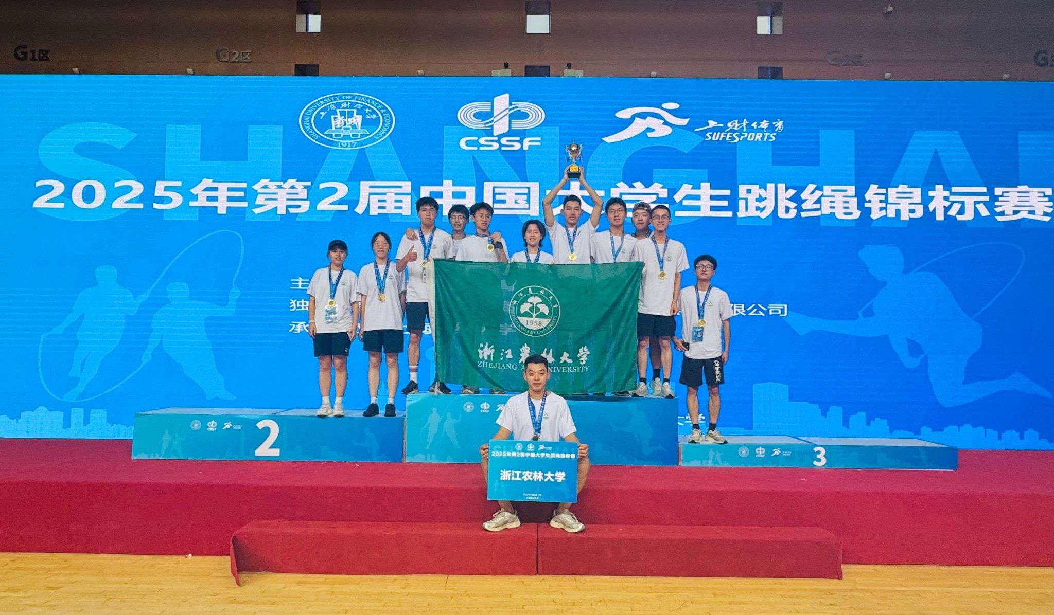 7月4日至6日,2025年第二届中国大学生跳绳锦标赛在上海财经大学举行。经过3天的激烈角逐,我校运动健儿获得4金4银的优异成绩,并荣获“体育道德风尚奖”。