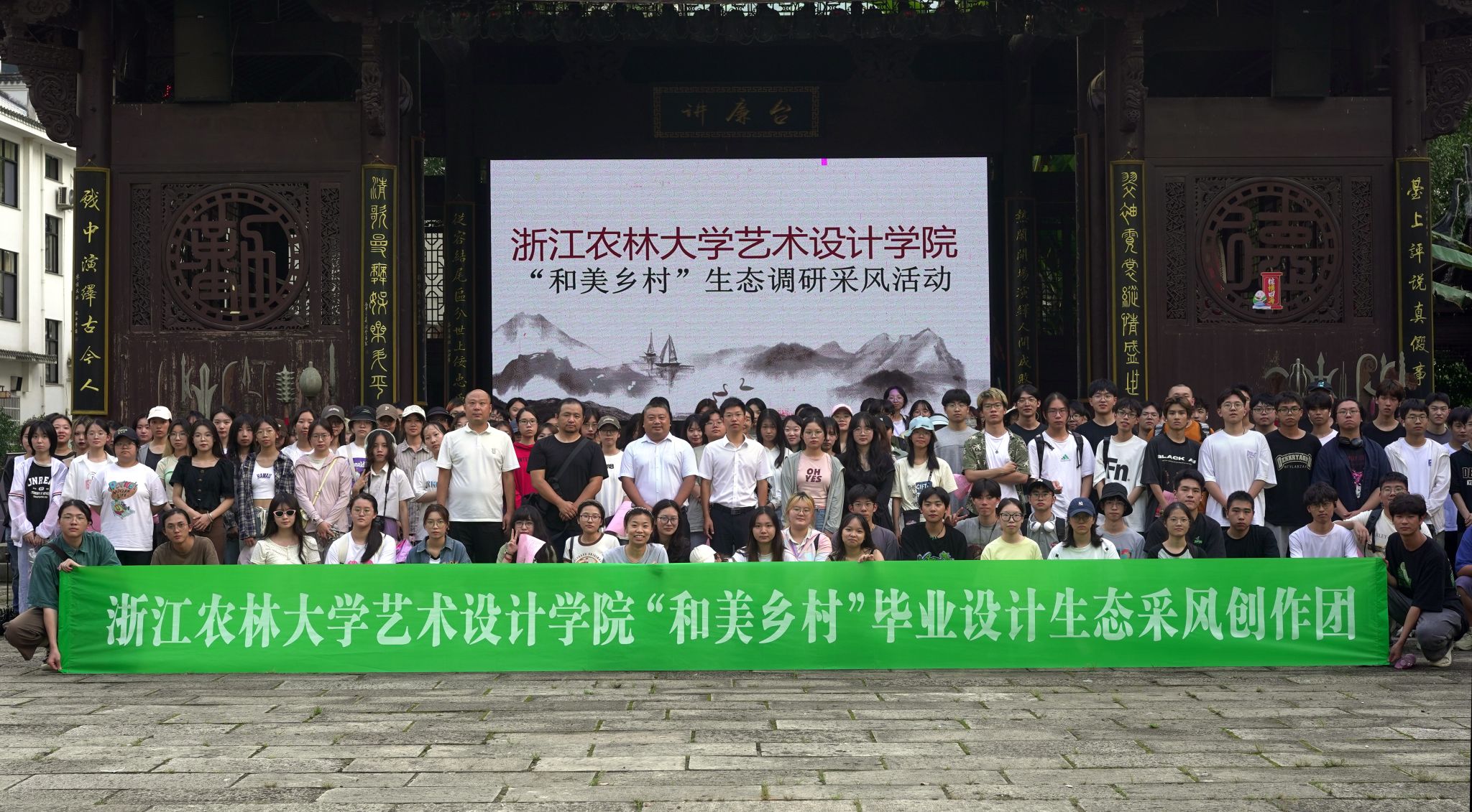 实践扎根,描绘振兴新画卷。学院党委与安吉天荒坪镇党委开展党建联建,共同举办“青鸟计划”创新创意设计大赛,160名学子打造“竹宝”IP形象,完成超100m2主题墙绘,激活乡村文旅动能。“乡俗绮梦,鱼嬉徽州”社会实践团、“艺术+”彩虹课堂暑期社会实践团分获全国高校“千校千项”优秀项目等荣誉,生动践行“把论文写在祖国大地上”。
