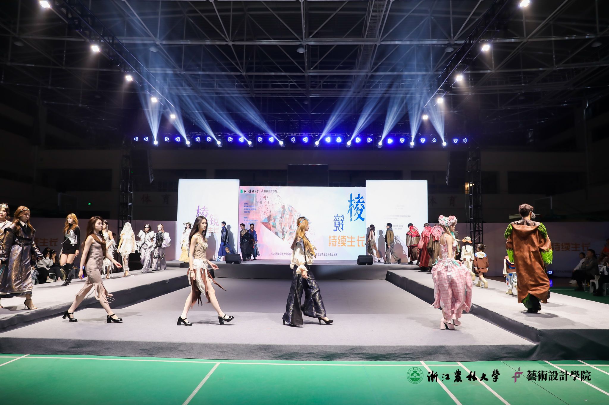 思政铸魂,打造特色品牌。学院立足学科优势与学生特点,以“艺术·生态·美育”为支点,打造“农林有‘艺’思”思政品牌。通过艺术市集、非遗体验、数字光影秀等形式,展现生态与艺术融合。“棱镜·生长”生态服装秀展演成为校园“最美毕业论文”,“吴越·风华”数媒之夜融合文化与创意、艺术与科技,带来震撼的视觉体验;“视见·新生”视传新境作品展探索艺术赋能未来的可能;“艺”起疗愈水彩课感受艺术疗愈的力量,实现思政线与教学线深度融合,让师生在艺术中感受生态之美,在生态中领悟艺术之魂。