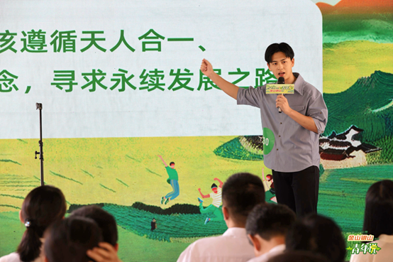 展示活动分突围赛、即兴赛、辩论赛三轮进行。在首轮突围赛,商云飞化身“龙门CEO”,以临安“龙门秘境”为原型,设计了沉浸式互动游戏,现场抢答、实时互动,将“优先盘活闲置资源、建立多元合作机制”等“两山转化”路径逐一解锁,顺利突围。第二轮90秒“金句”即兴赛中,商云飞围绕抽取的金句“我们应该遵循天人合一、道法自然的理念,寻求永续发展之路”,开篇追本溯源,而后聚焦“道法自然”的治理启示,以“生物治沙”的案例加以论证,最后深刻阐释了传统生态理念与现实实践的结合,成功胜出。第三轮180秒辩论PK赛中,商云飞以“生态环境治理,问题剖析更重要”为立场,提出三大论点,逻辑缜密、案例鲜活,展现出强大的思辨能力与对生态治理实践的深刻认知,成功胜出。
