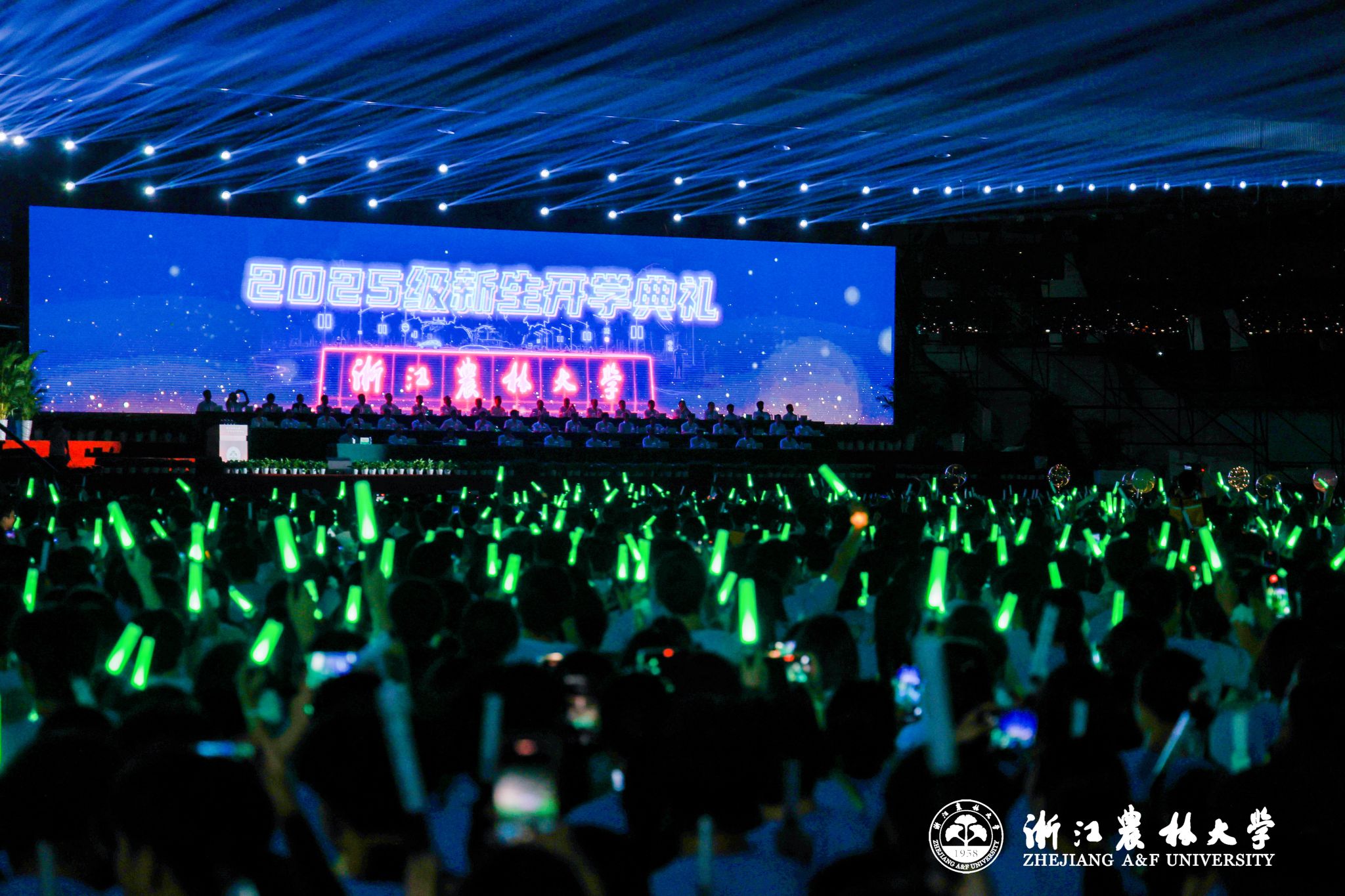 9月16日晚,浙江农林大学2025级新生开学典礼在东湖校区隆重举行。5340名本科生、2143名硕博研究生、423名留学生共聚一堂,与浙江农林大学“双向奔赴”,共同开启崭新的奋进篇章。超过20万人次通过浙农林大官方全媒体平台线上观看直播,共同分享新生们步入大学的喜悦,一起见证新生开启人生新的征程。