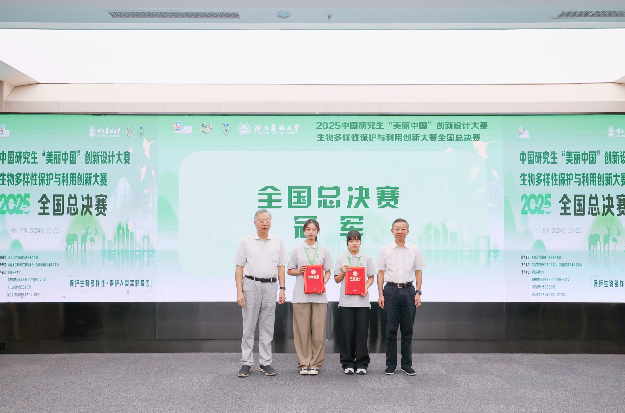 作为第五届世界生物圈保护区大会平行论坛边会系列活动之一的中国研究生“美丽中国”创新设计大赛——生物多样性保护与利用创新大赛全国总决赛,于9月20日—22日在浙江农林大学举行。经分赛道现场答辩、专家评审、专委会会议,并报大赛组委会表决通过,评定一等奖10项、二等奖32项、三等奖68项,优秀指导教师16人、优秀组织单位15个。经现场路演、专家评审及现场投票推荐,大赛组委会综合评定,从一等奖获奖团队中角逐出了全国总决赛冠亚季军。