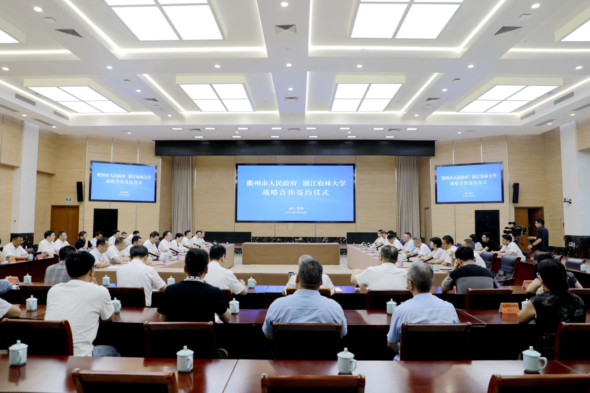 9月26日,浙江农林大学与衢州市人民政府战略合作签约仪式在衢州市行政中心举行。未来,校地双方将进一步深化合作,发挥各自优势携手打造校地合作新样板,努力谱写中国式现代化城市范例的衢州篇章,共同绘就市校合作的美好未来,为推进乡村全面振兴实现共同富裕作出更大贡献。
