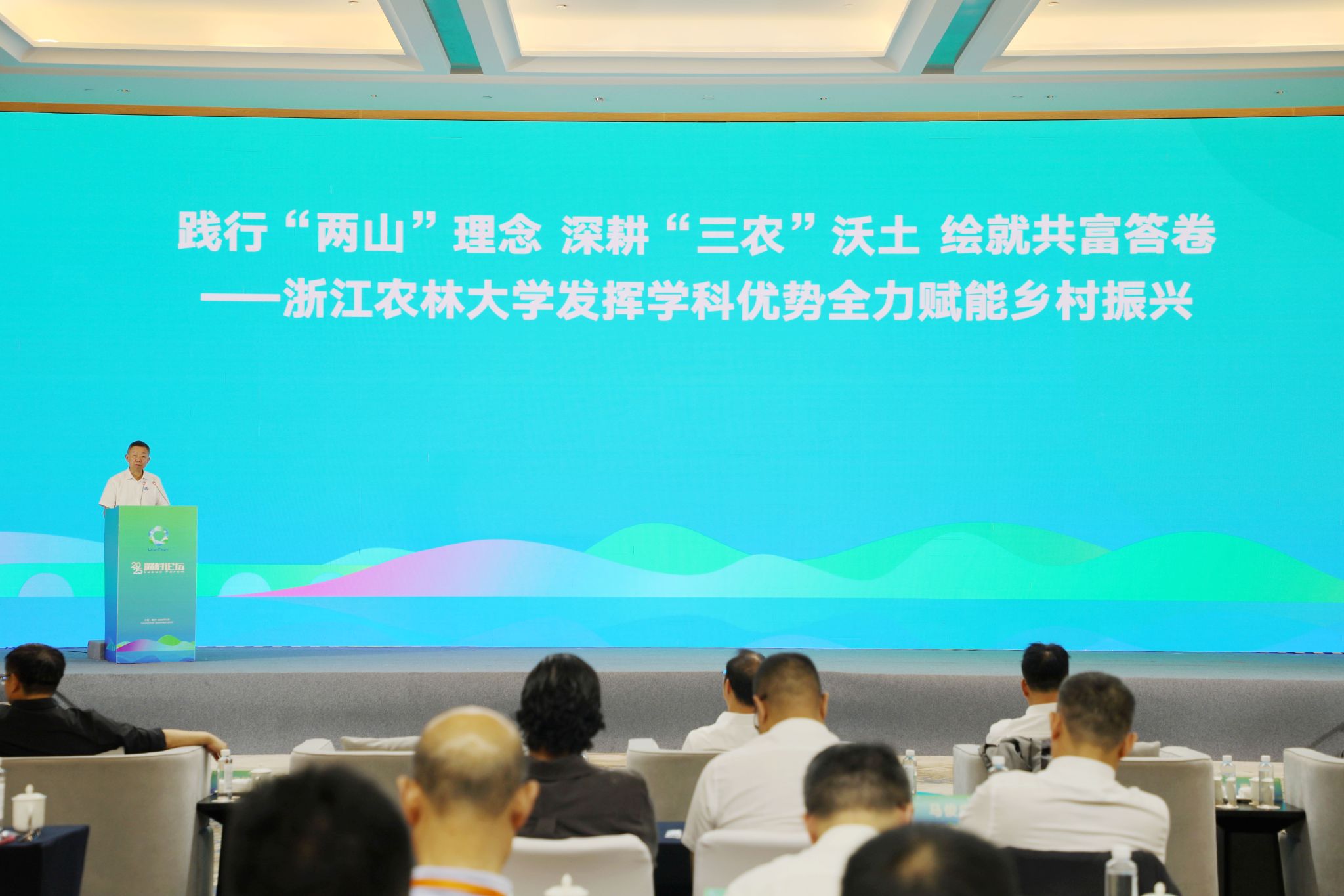吴家胜以“践行‘两山’理念 深耕‘三农’沃土 绘就共富答卷——浙江农林大学发挥学科优势全力赋能乡村振兴”为题,系统阐释了学校长期以来厚植根基,打造高校服务乡村振兴的“浙农林大方案”;精准发力,赋能高校服务乡村振兴的“浙农林大实践”;总结提炼,贡献高校服务乡村振兴的“浙农林大启示”;展望未来,书写高校服务乡村振兴的“浙农林大新篇章”。在践行“两山”理念的生动实践中,学校探索形成“全校服务全域”的特色模式,用农林学科优势架起校地协同的桥梁,在服务乡村振兴战场上书写了实干答卷。