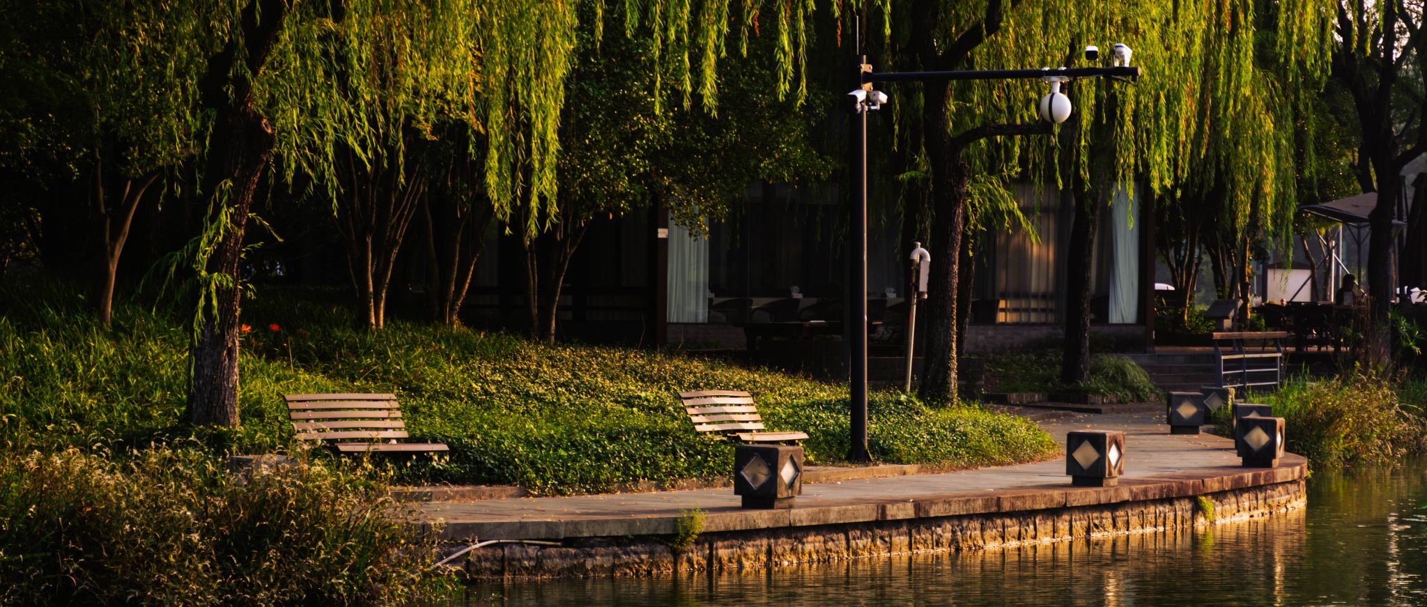 整片东湖被染成温柔的暖金色