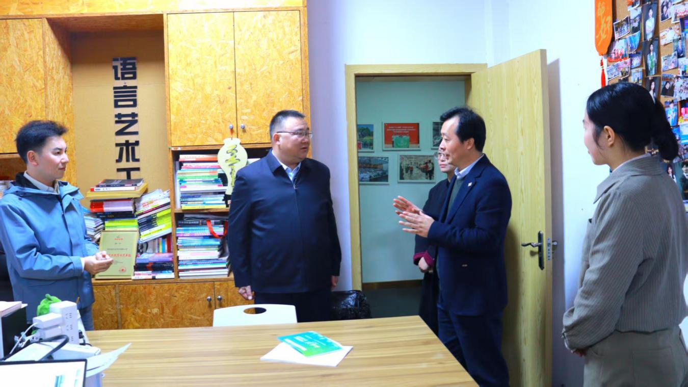 朱斌一行还走访了“同伴”青年工作室,实地了解学生社团建设情况和学生活动空间使用情况。