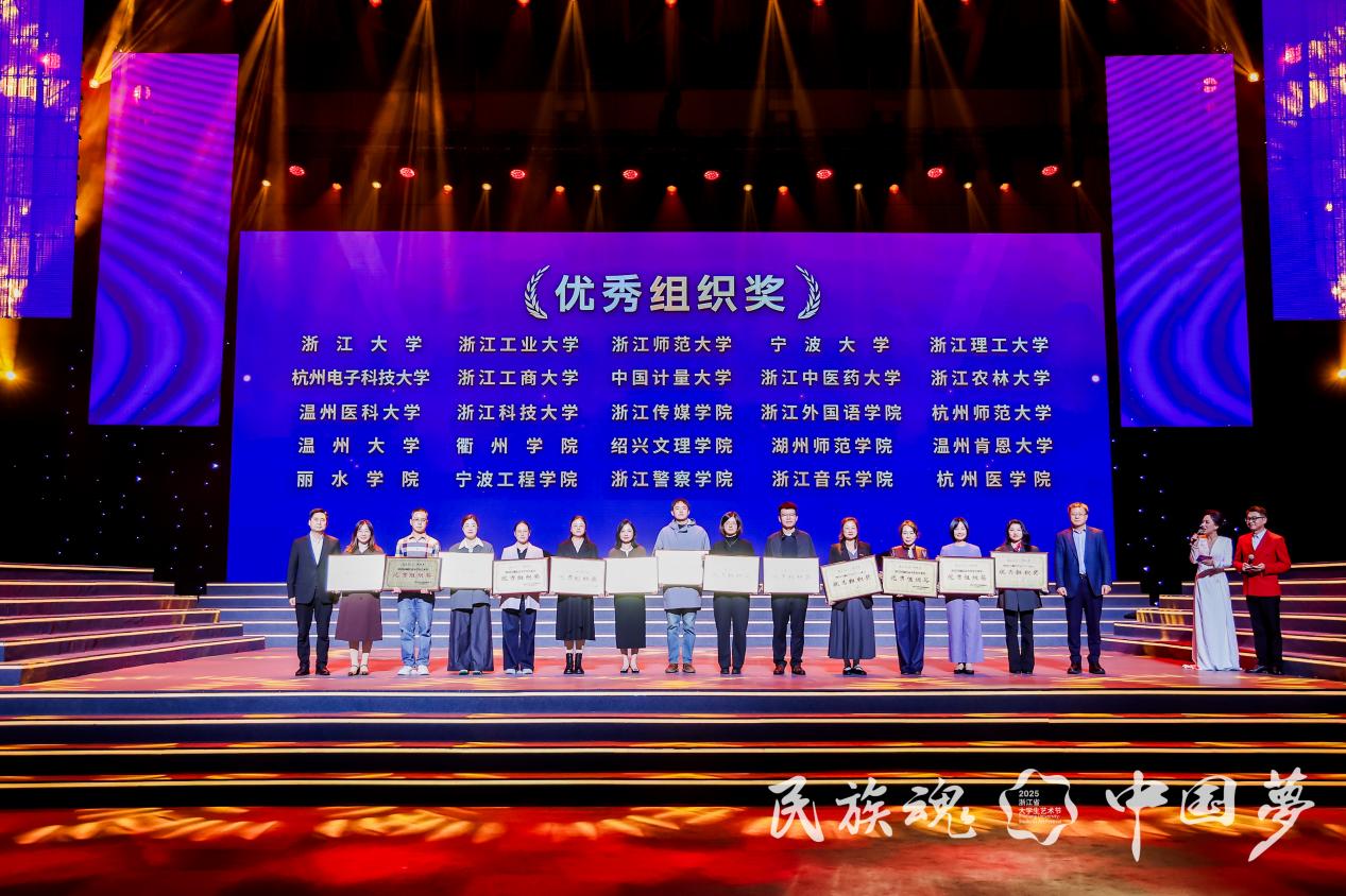近日,2025年浙江省大学生艺术节的获奖名单揭晓。我校选送的8个作品成绩斐然:荣获戏剧项目一等奖2项、舞蹈项目一等奖1项、十佳歌手最佳女歌手奖1项,以及舞蹈项目二等奖2项、戏剧项目三等奖1项。我校再获优秀组织奖。戏曲作品《梁祝·回十八》和十佳歌手选手还获邀参加闭幕式展演。