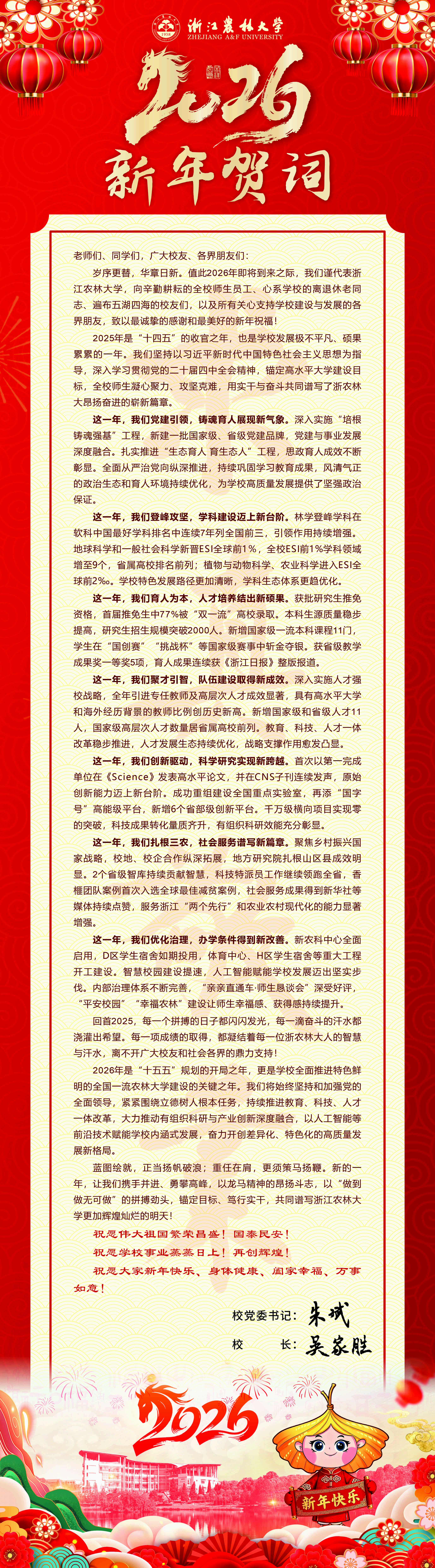 浙江农林大学2026年新年贺词