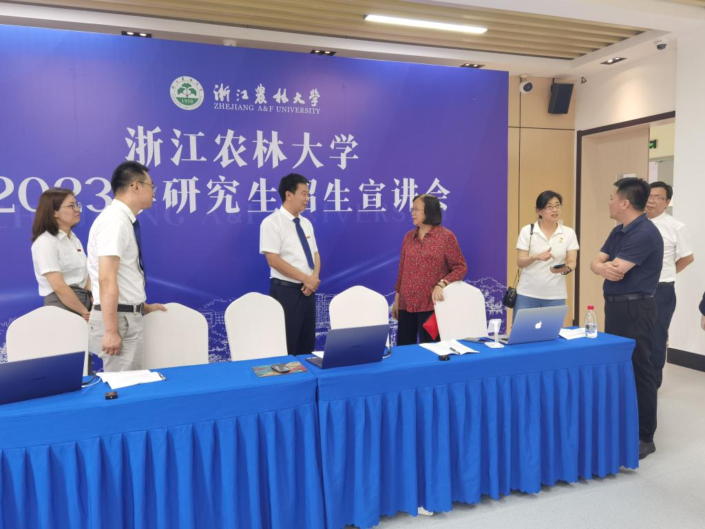 直播期间,副校长沈月琴也来到直播现场,与参加研招直播的老师们亲切交谈,指导学院研究生招生工作。沈月琴指出,研究生招生工作是构建高质量研究生教育体系的基础环节,加大优质生源吸引和选拔力度是研究生教育质量提升的突破口。各学院要高度重视研究生招生宣传工作,拓展宣传渠道,进一步吸引优质生源,确保研究生教育质量稳步提升。
