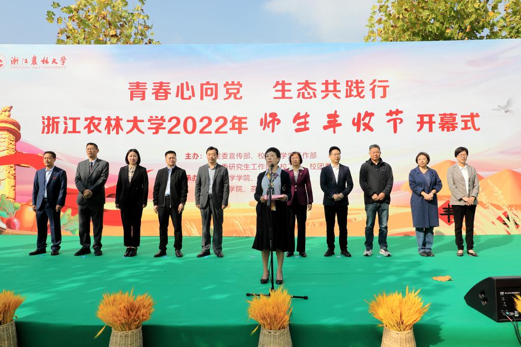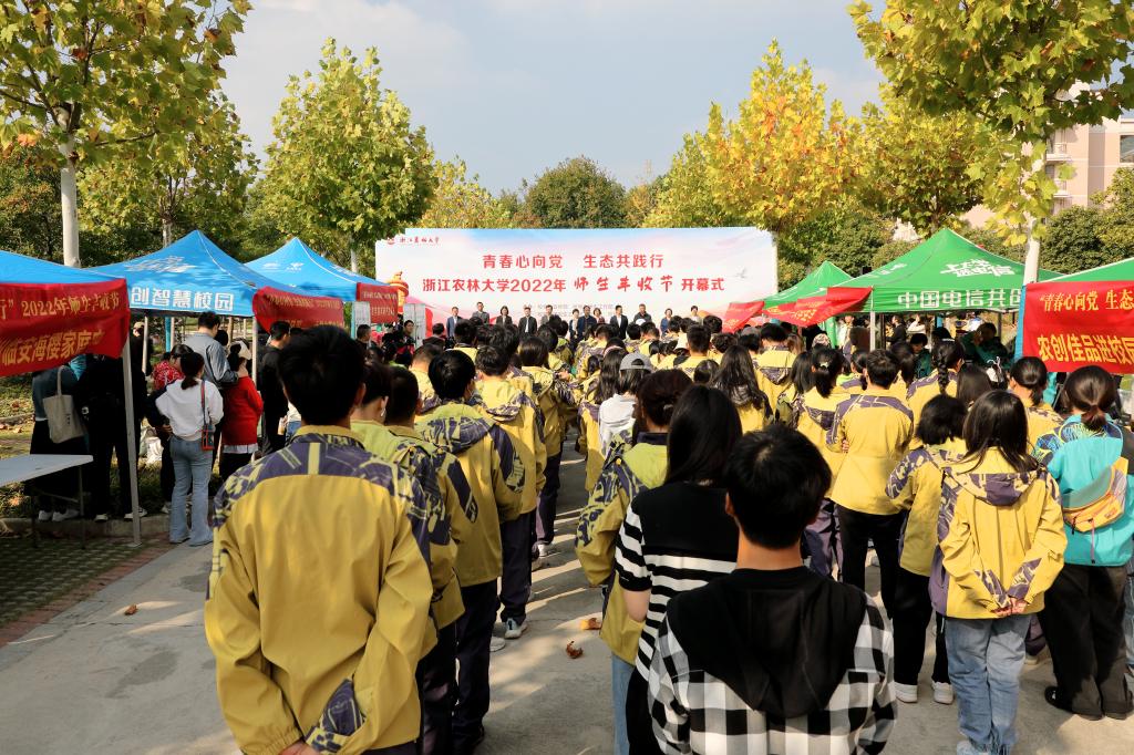 10月23日上午,“青春心向党 生态共践行”浙江农林大学2022年师生丰收节开幕式在农作园举行。校党委副书记施美红,副校长沈月琴,党委委员、宣传部部长倪建均出席开幕式。学校相关职能部门负责人、承办学院师生代表等参加开幕式。