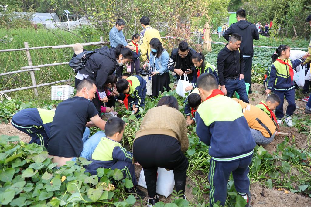 开幕式结束后,农事体验与采摘活动在农作园正式拉开序幕,60余支队伍进入番薯、玉米、萝卜、青菜等地块,开展秋收采摘,并通过相机定格劳作瞬间,留下美好记忆,共同传播耕读文化,分享丰收喜悦。