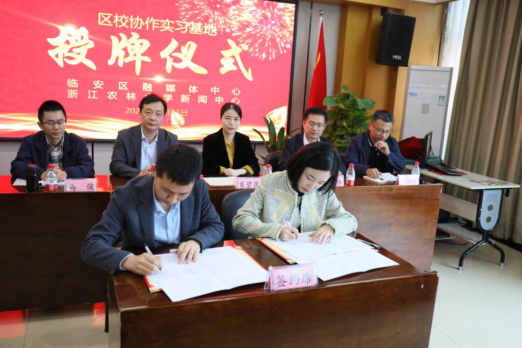 10月31日,校新闻中心和临安区融媒体中心共建区校协作实习基地揭牌暨战略合作签约仪式在临安区融媒体中心8楼会议室举行。