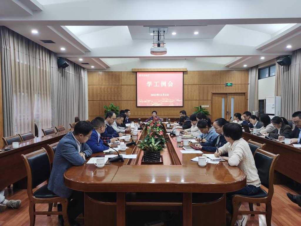 11月2日,学校召开2022年第九次学工例会,研讨近阶段学生工作,部署党的二十大精神学习,会议由校党委副书记施美红主持。