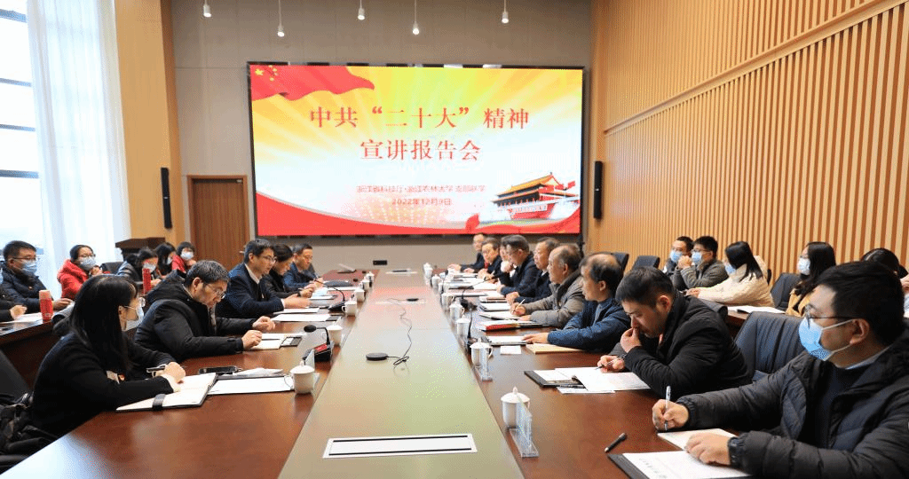 12月9日,浙江省科技厅党组成员、副厅长吴卿一行来校开展党的二十大精神主题宣讲和支部联学活动,学校中层干部党员代表、机关第十党支部和林生院森林培育党支部的全体成员参加。会议由副校长吴家胜主持。