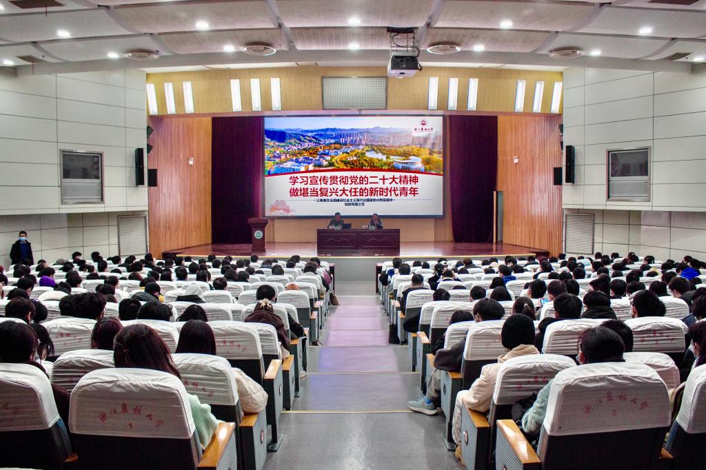 倪建均以《学习宣传贯彻党的二十大精神,做堪当复兴大任的新时代青年》为题,以党的二十大报告的鲜明主题、伟大变革、决定性意义、中国式现代化、战略部署、自我革命、风险挑战等方面为重点,带领大家一起系统地学习党的二十大报告。同时,他围绕浙江发展及浙江农林大学在乡村振兴、共同富裕、生态文明等领域特色贡献,介绍我校近年来高质量发展的历程。他希望同学们要学深悟透党的二十大精神,要敢于“做梦”,更要会“做梦”,把“三农”情怀融入个人梦想,将个人梦想根植于国家梦想的沃土之上。他殷切嘱托同学们主动适应时代新要求,让青春在全面建设社会主义现代化国家的火热实践中绽放绚丽之花!