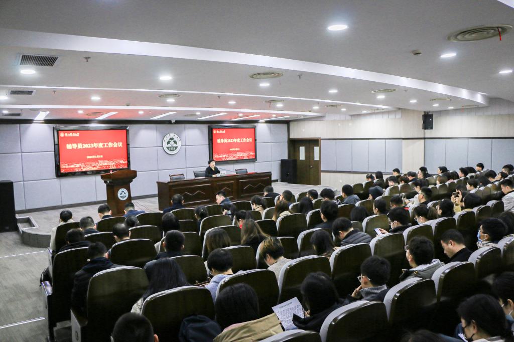 宣传部、学工部、研工部、保卫处、后勤中心、团委等部门负责人,各学院分管学生工作负责人,全体辅导员,全体公寓兼职辅导员参加了会议。