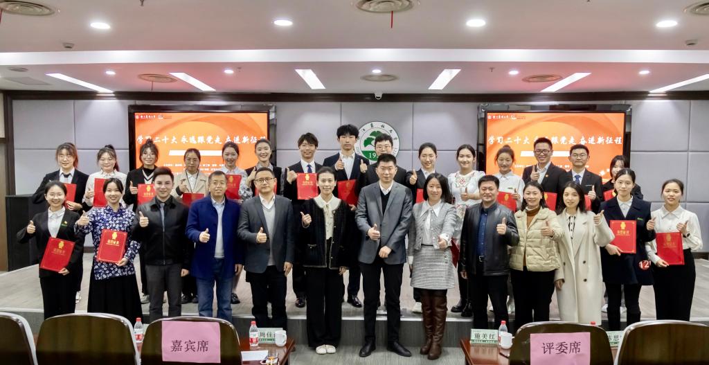 比赛现场,来自各学院的12位青年团干部、专任教师,以及19位研究生、本科生围绕“红色教育”“发展成就”和“青春奉献”三大参赛主题,弘扬主旋律,传播正能量。选手们或通过带领大家一起重温“红船精神”“红旗渠精神”“浙西南革命精神”,用亲身经历讲述雷锋班的故事,号召广大青年坚定信念、筑牢新时代中国特色社会主义伟大实践的信仰之基;或通过自身成长经历讲述家乡巨变展示浙江“重要窗口”建设、践行“八八战略”和数字化改革的卓越成效,全方位展现中国特色社会主义制度的优越性;或讲述我校周国模教授团队开展竹产品碳足迹标签研究,乡村振兴研究与服务中心师生利用暑期开展艺术振兴乡村,庭院改造,助力乡村振兴的故事。选手们引经据典、声情并茂,用党的科学理论武装青年,用党的初心使命感召青年,以昂扬的青春风貌,传播青年声音,凝聚青年力量。